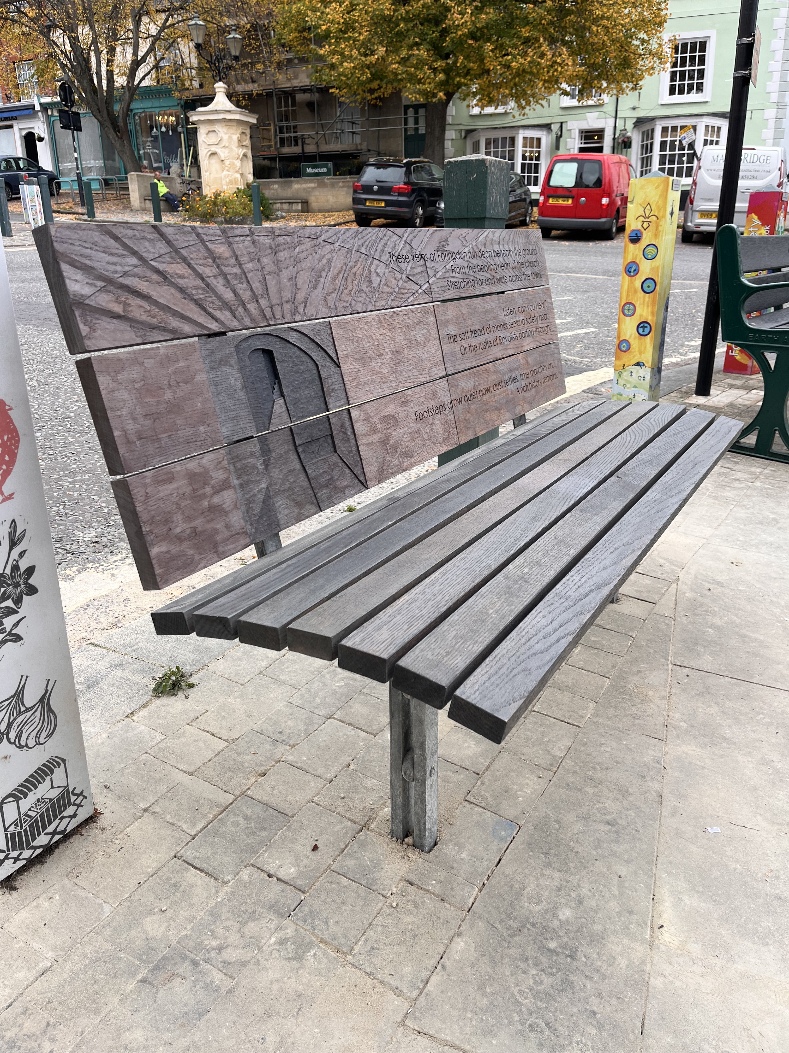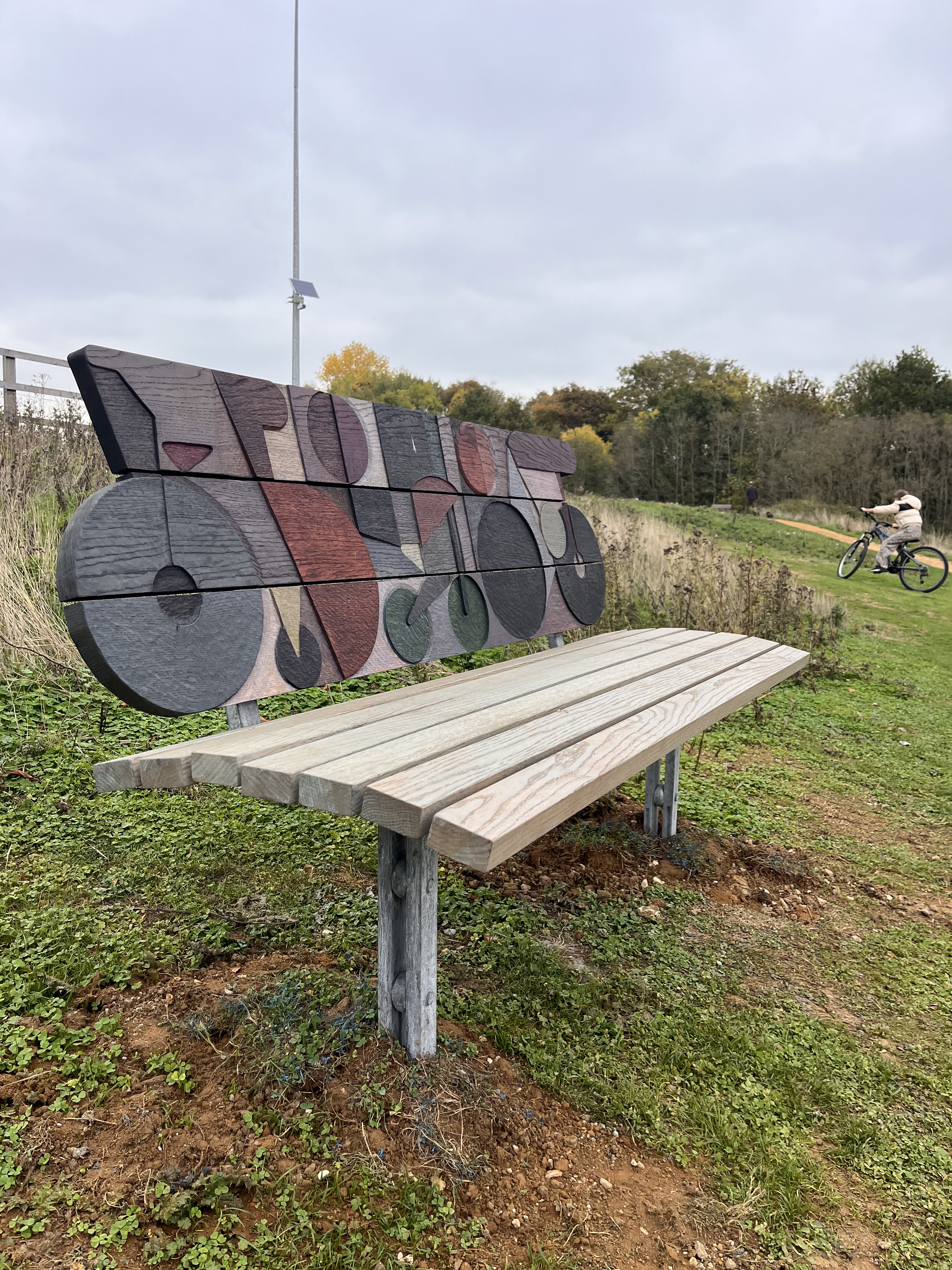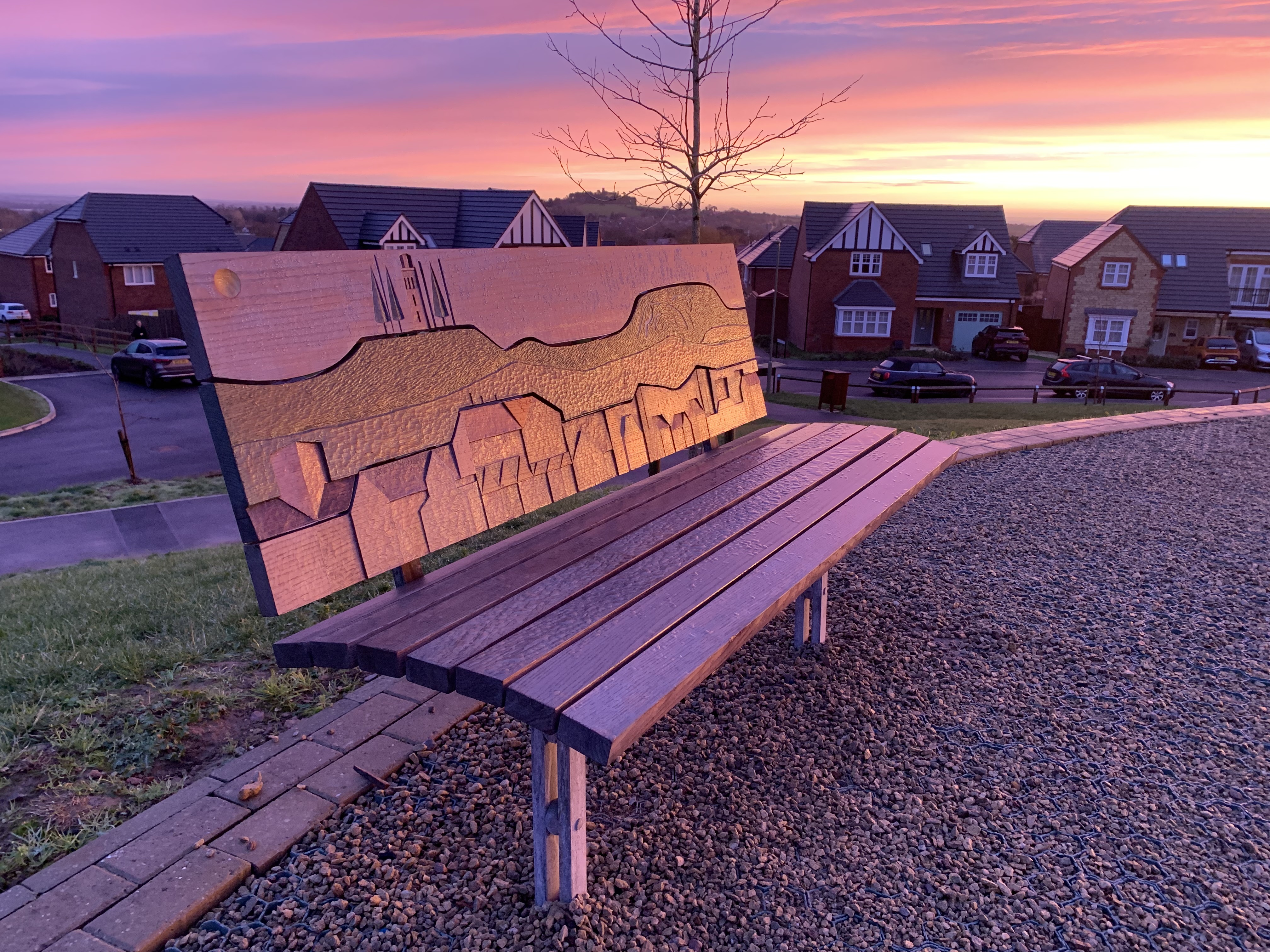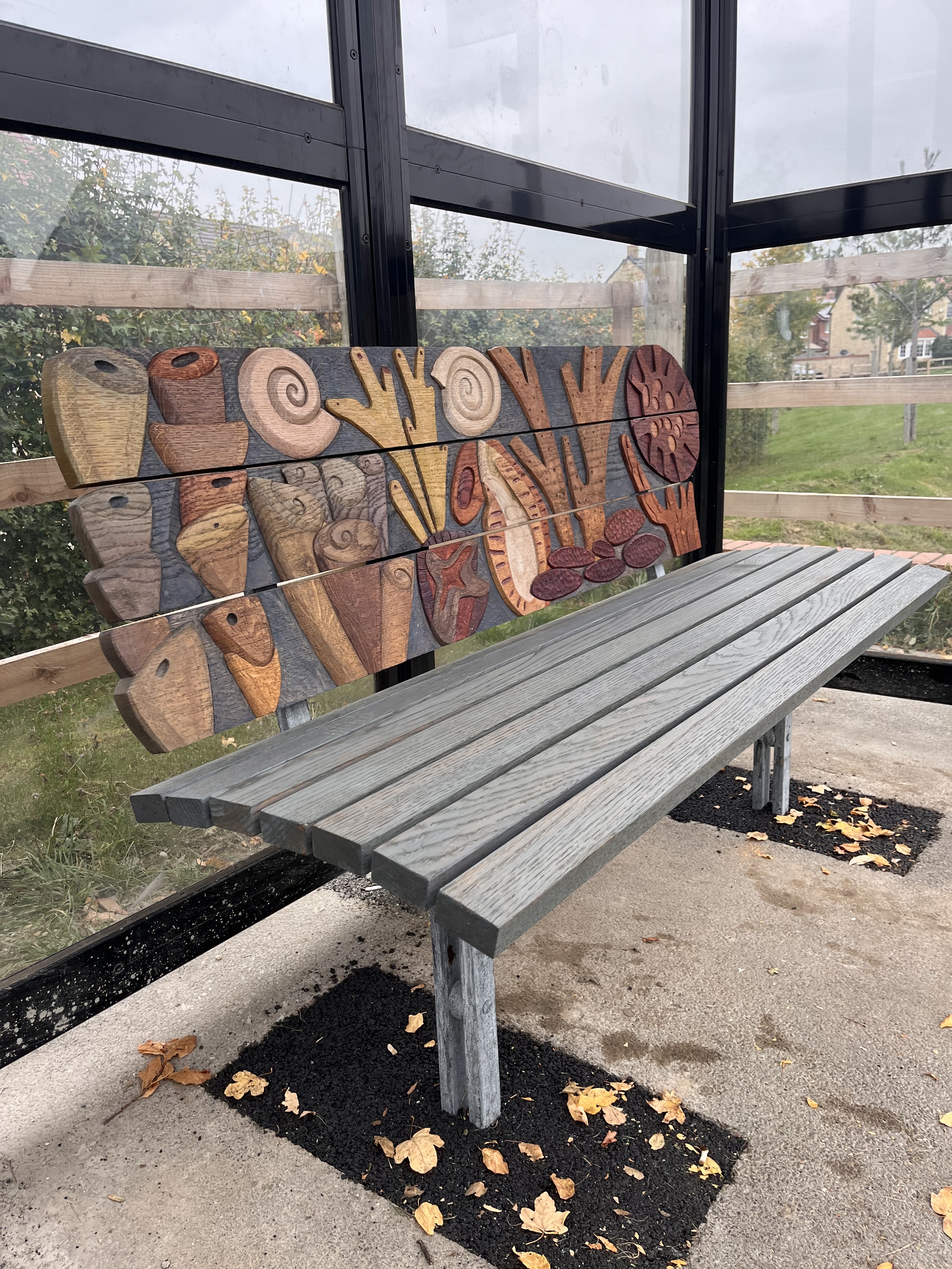 Nicola’s seating is created from carved, scorched or stained oak. This is integrated with a hand forged steel structure. Combining wood and metal allows the timber to drain freely, increasing the artwork’s longevity. Materials and components have an optimum balance between performance and environmental impact.